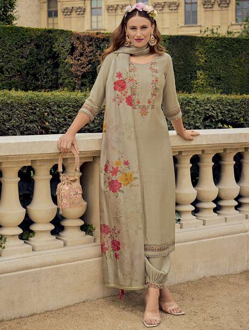 - Browse through the latest range of ethnic sets for women with tailored sleeve designs with embroidered works.