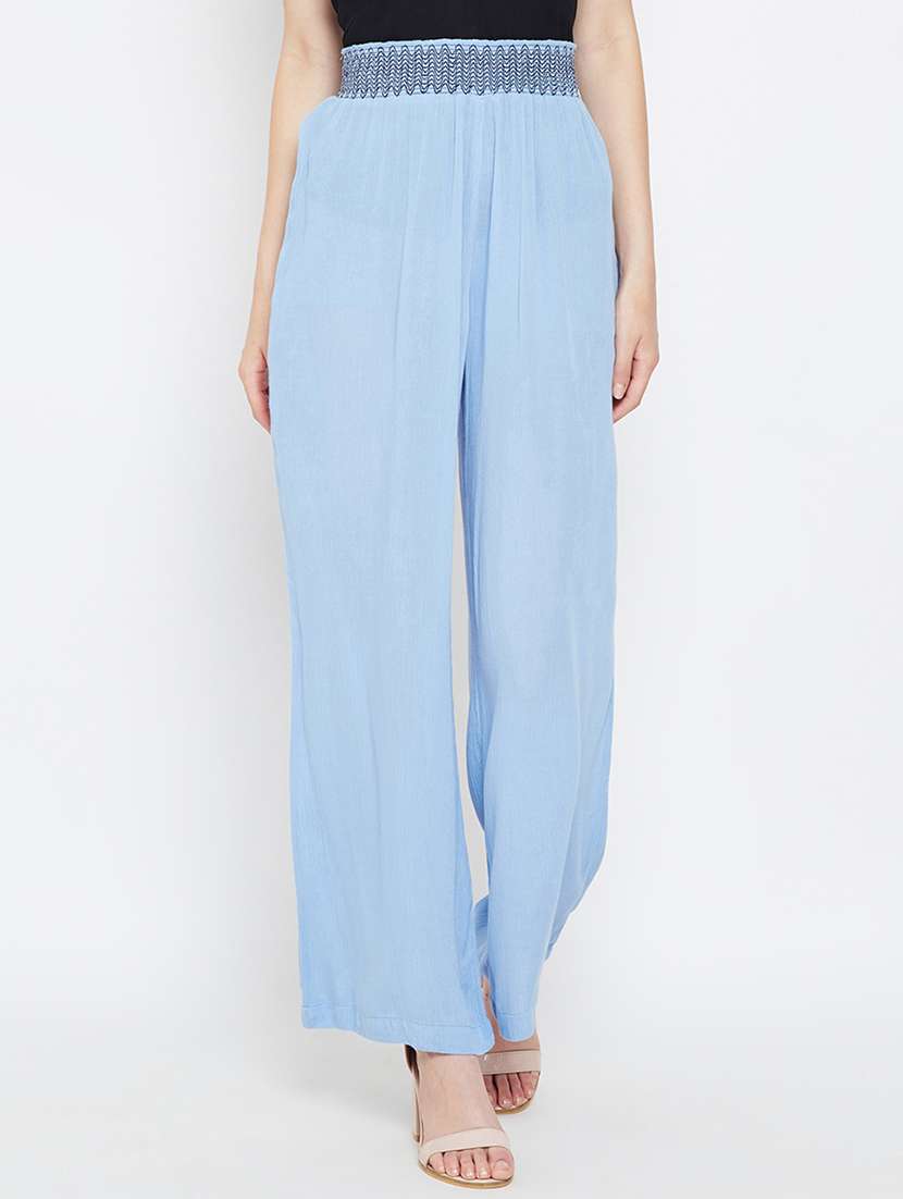 - Can’t do without fancy palazzos? Well, get them at LimeRoad from oxolloxo and in light blue colours.