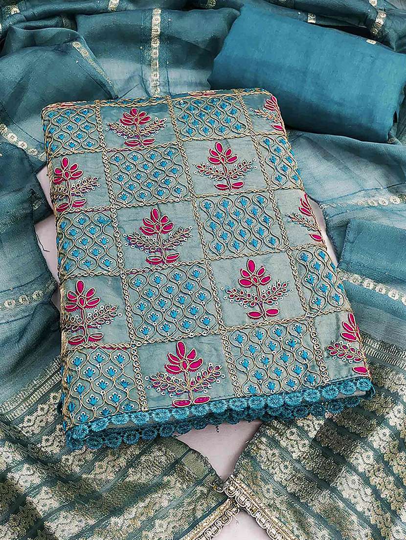 women solid with work embroidered unstitched suit set - 22182728 - Very Small Image - 1
