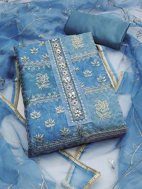 women solid with work embroidered unstitched suit set - 22182744 - Very Small Image - 1