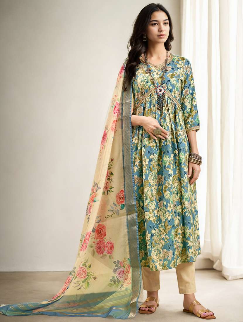 women three quarter sleeve kurta pant with dupatta set