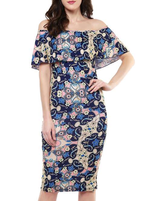 - » navy blue printed viscose ruffle dress