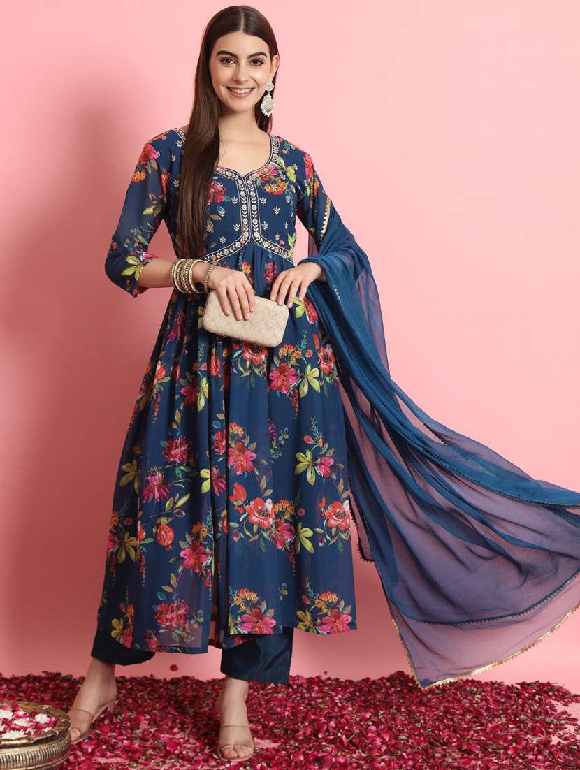 - » women blue floral printed kurta pant set with dupatta