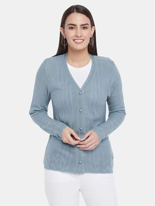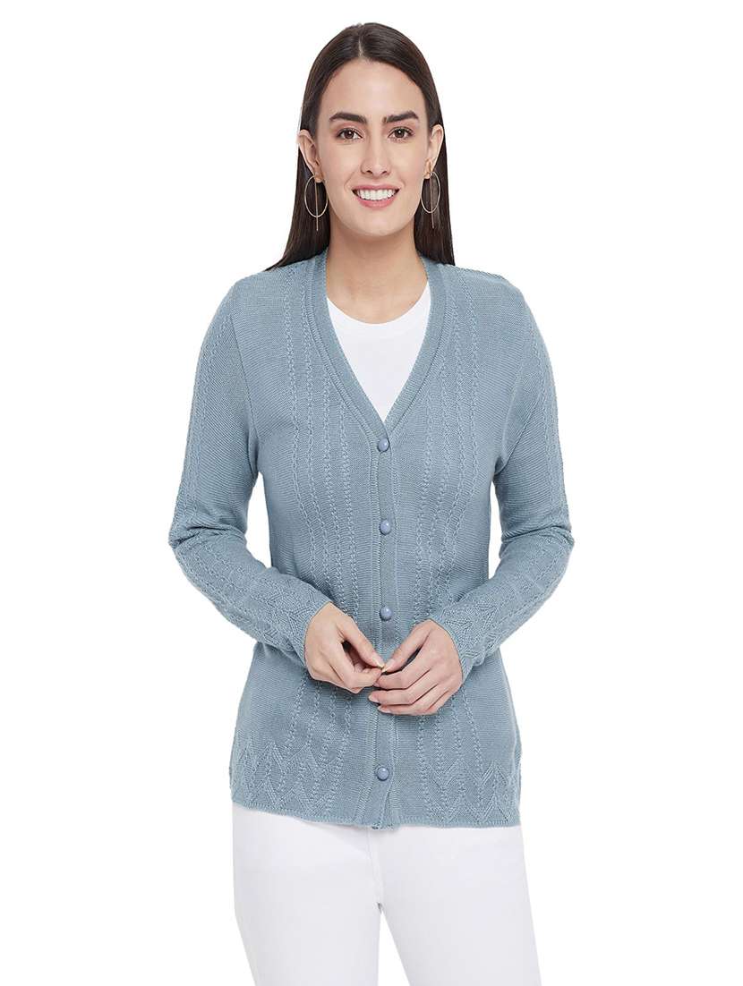 CLAPTON Casual Acrylic Blend V-NECK Full Sleeve Button Self Design / Solid Short Cardigans For Women Sky-(Size-XXX-Large)