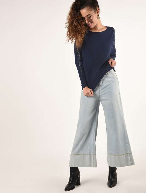 - » lace panel embellished detail pullover
