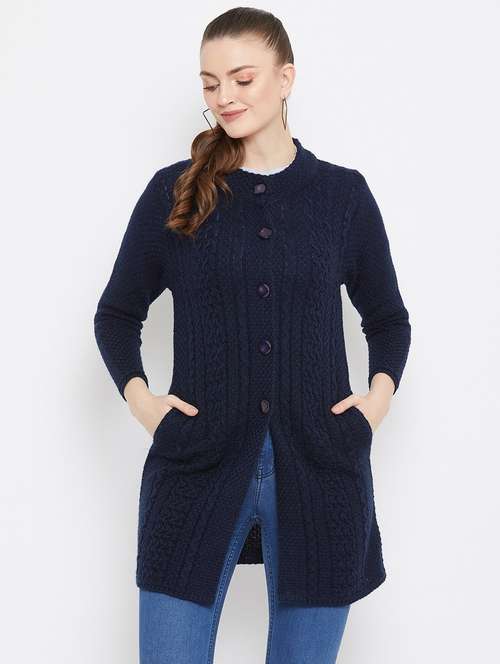 - » navy blue self designed woolen cardigan