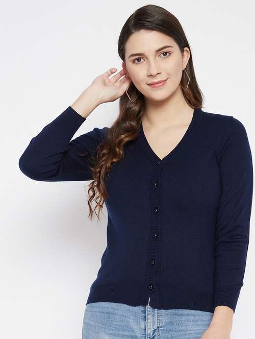 - » navy blue solid woolen cardigan
