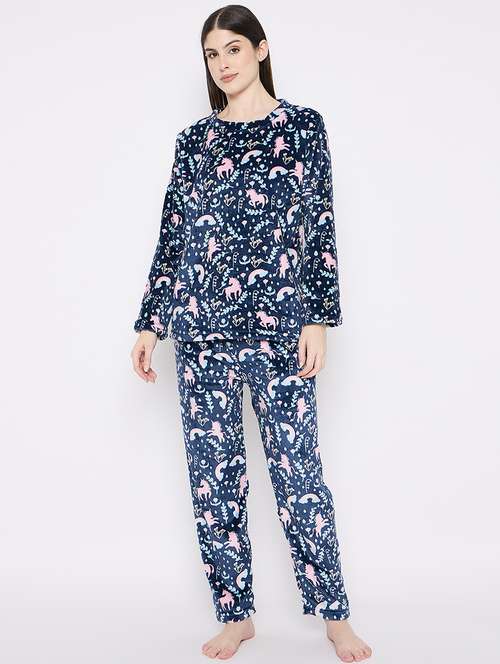 - After a long tiring day, slip into something homely, shop for the all-new collection of nightwear sets for ladies in M sizes and gorgeous blue designs and colors.