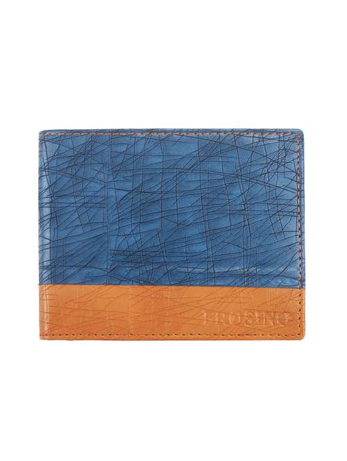 FROSINO FRWL0005 MEN'S CASUAL BLUE/TAN UNIQUE PATTERN BIFOLD FLAP WALLET WITH MULTIPLE POCKETS FOR CREDIT AND DEBIT CARDS