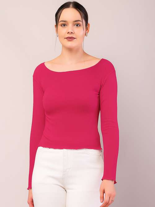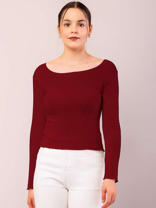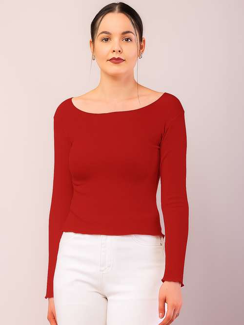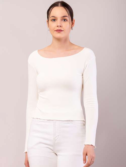 - Opt for this top made up of cotton blend material and get it in a varied neck design.