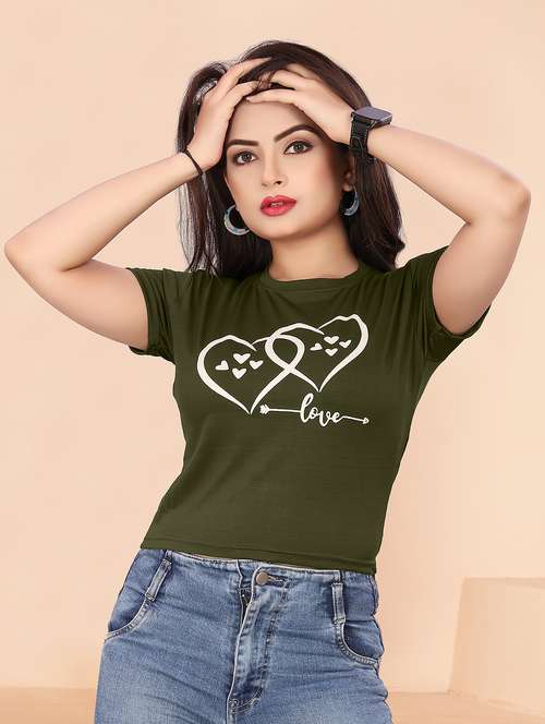 - » women's chest print round neck t-shirt