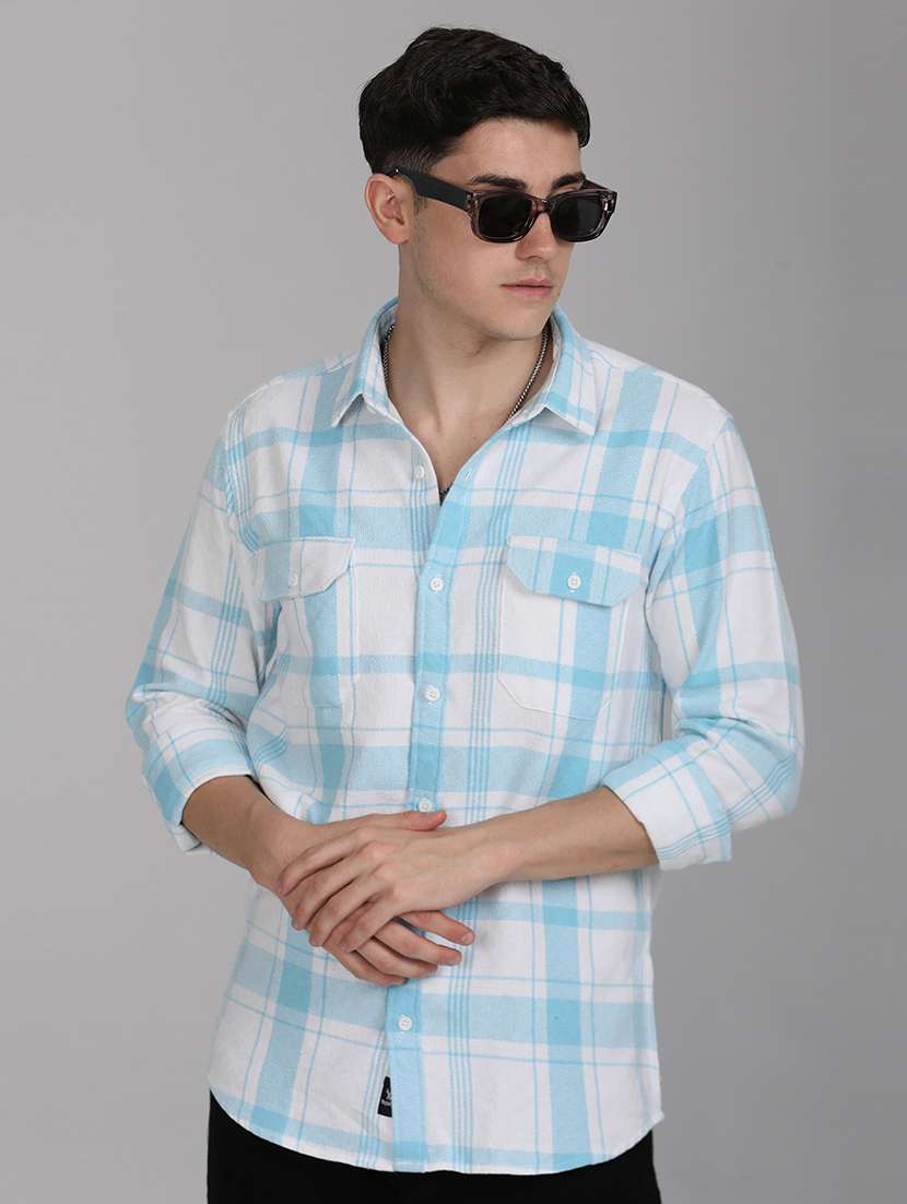 - » men checkered collared long sleeves casual shirt