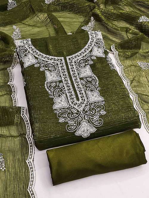 - Look ultra gorgeous in unstitched suits from Peachmode and grab these beautiful suits in bottle green colour.
