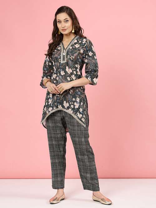 Bottle Green Geometric Printed Tunic Top with Trousers Co-Ords.