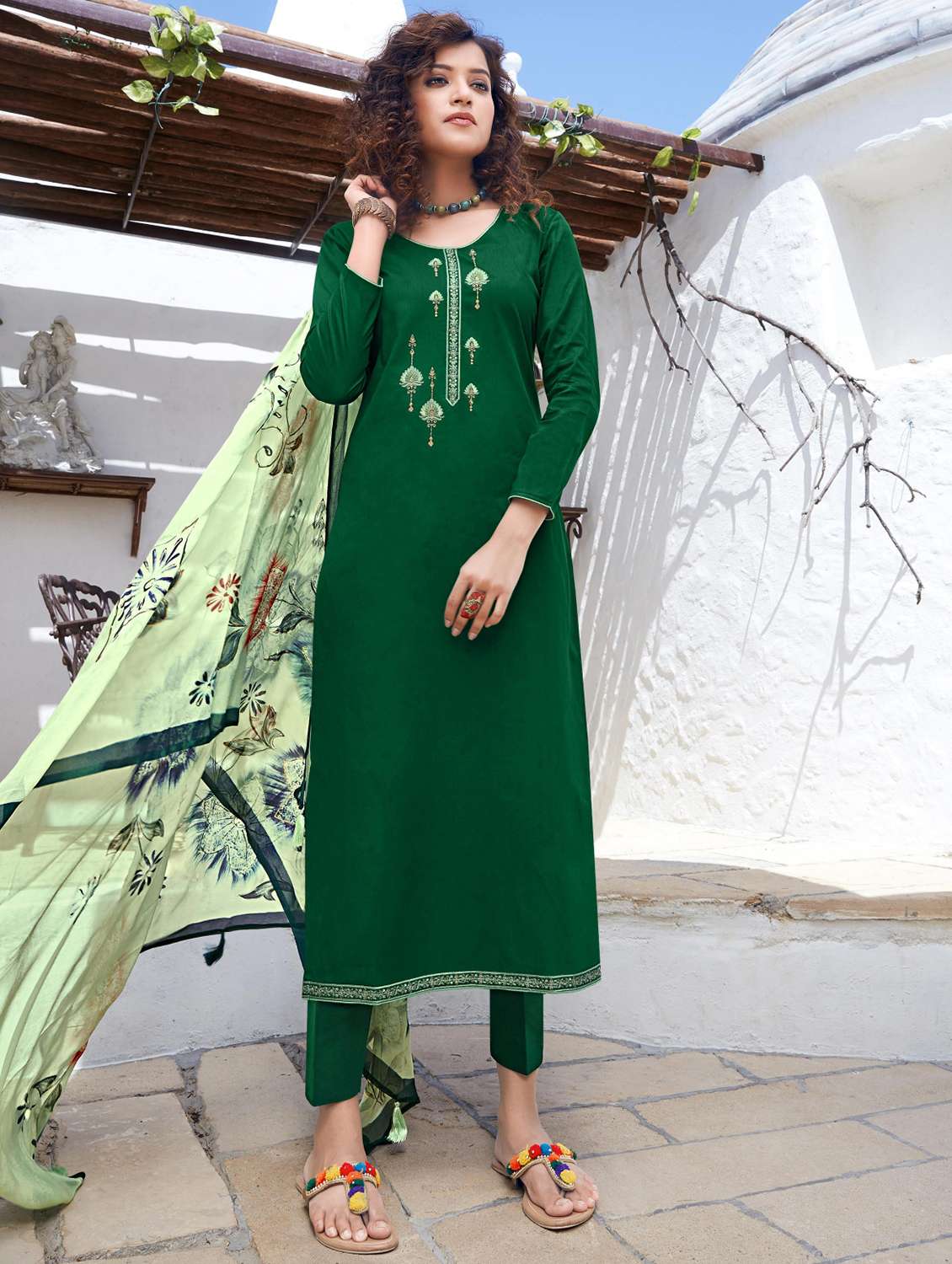- Look ultra gorgeous in unstitched suits from Lilots and grab these beautiful suits in green colour.