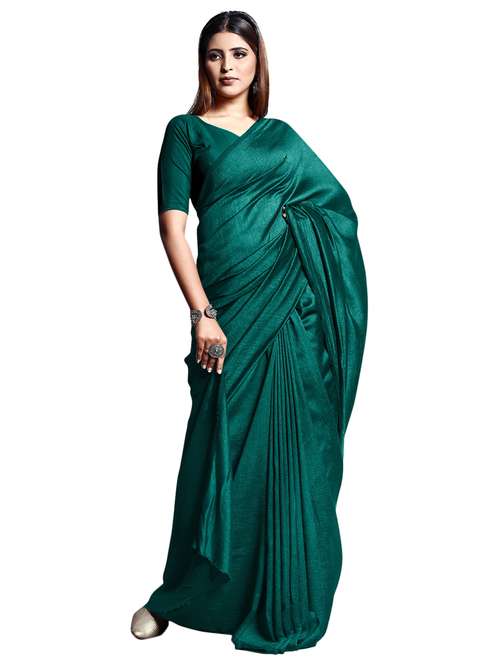 women bottle green plain saree with blouse