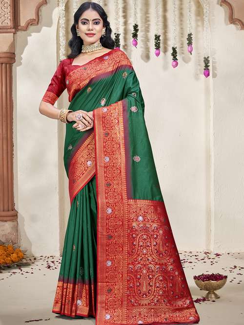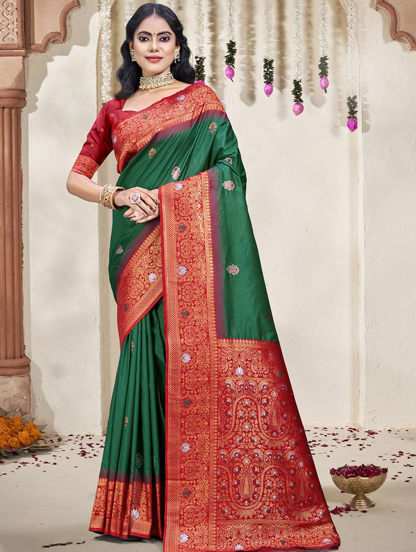 Sangam Prints Bottle Green SILK Woven Work Traditional Saree