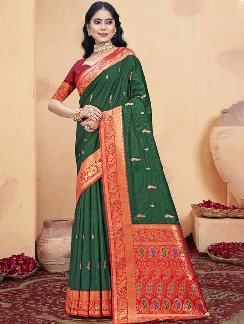 Sangam Prints Bottle Green SILK Woven Work Traditional Saree
