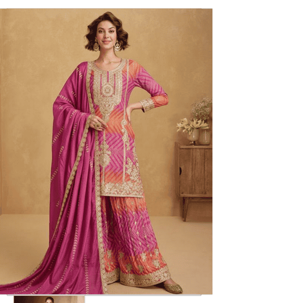 women magenta sequined kurta sharara set with dupatta