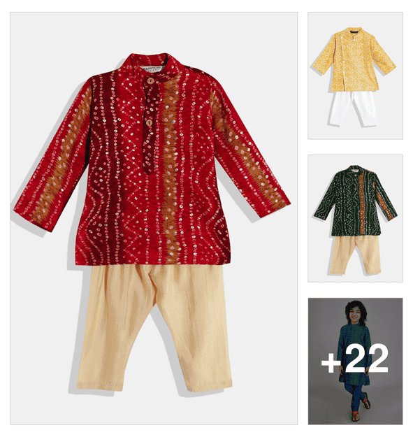 boys printed long sleeve kurta