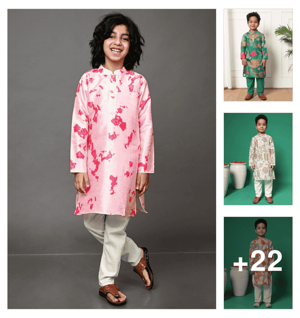boys printed long sleeve kurta