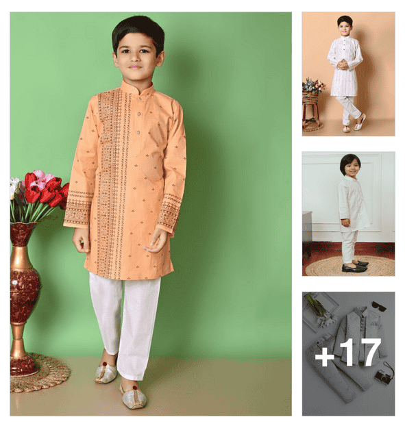 boys embroidered long sleeves kurta set