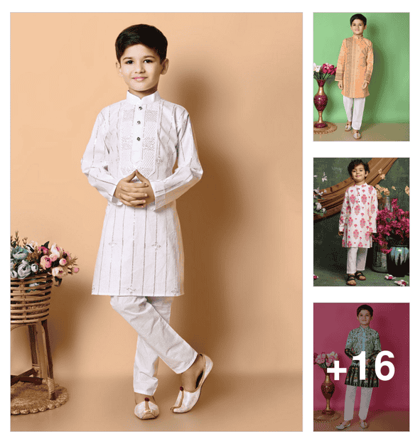 boys embroidered long sleeves kurta set