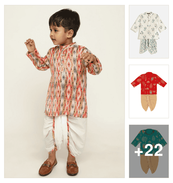 boys embroidered long sleeves dhoti kurta set