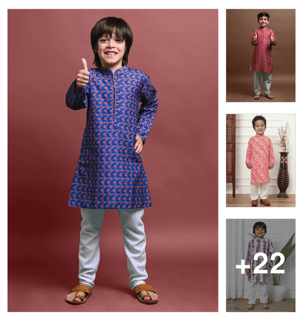 boys printed long sleeve kurta