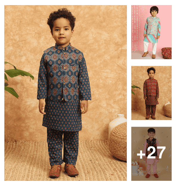 boys embroidered long sleeves kurta set