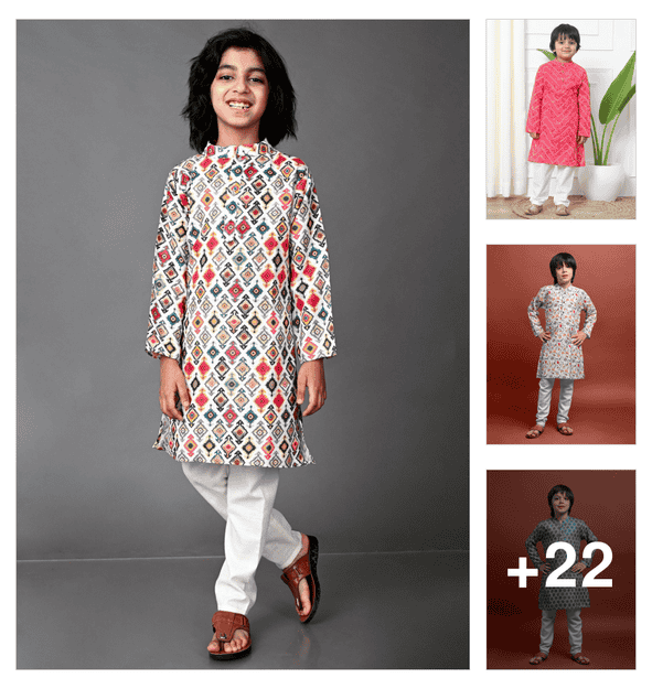 boys printed long sleeve kurta