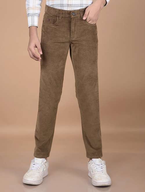 boys brown solid mid rise corduroy trouser