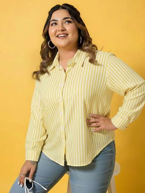women plus size striped long sleeve collared shirt