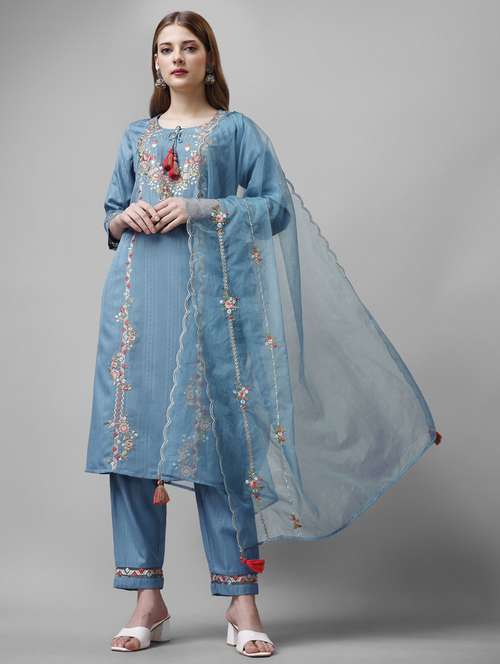 women three quarter sleeve kurta pant with dupatta set