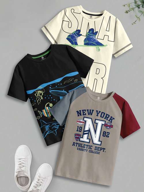 pack of 3 boys round neck printed t-shirt