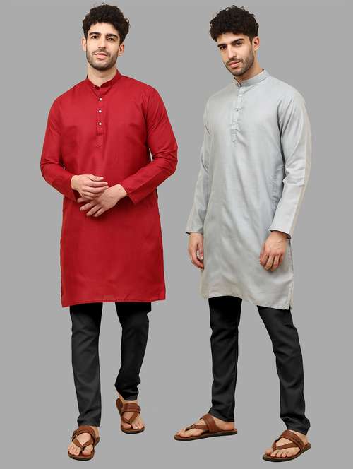 men pack of 2 solid mandarin neck kurta pyjama ethnic wear set
