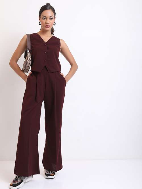 women solid top and trouser co-ord set