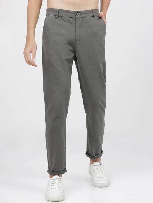 men mid rise solid chinos