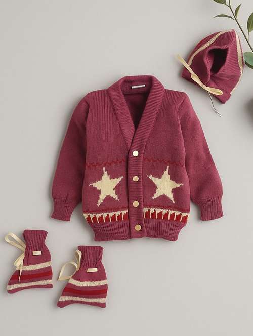 kids cardigan with woolen scoks & cap