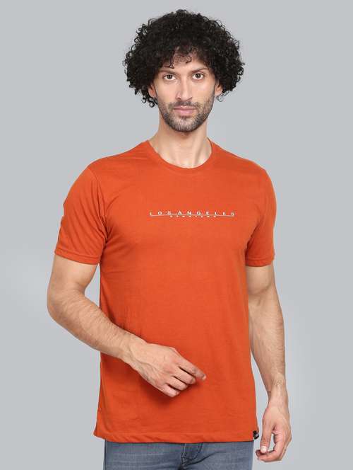 orange chest printed t-shirt