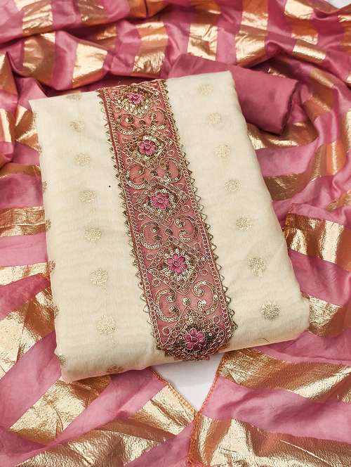 women solid with work unstitched suit set