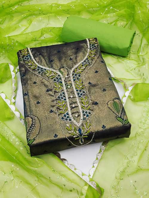 women solid with work unstitched suit set