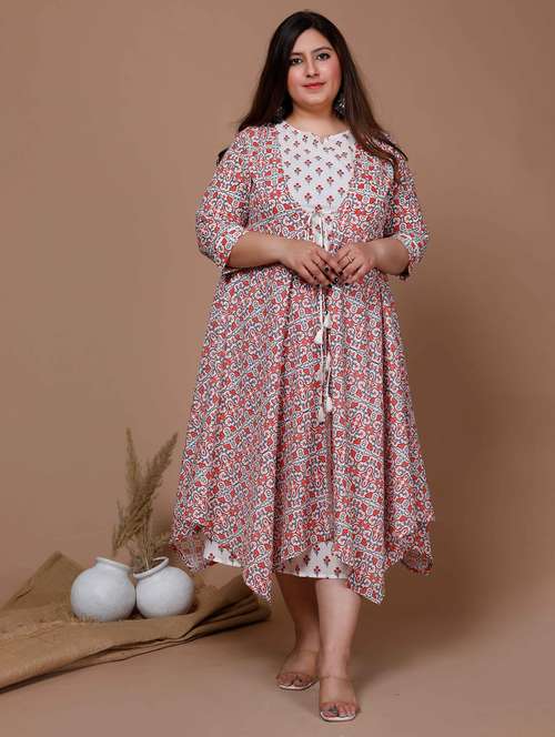 women plus size floral printed three quarter sleeve a-line kurta