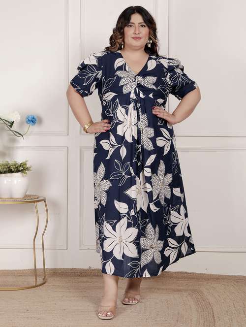 women plus size floral three quarter sleeve kurta with dupatta set