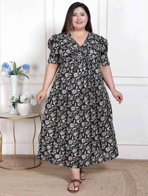 women printed puff sleeve a-line dress
