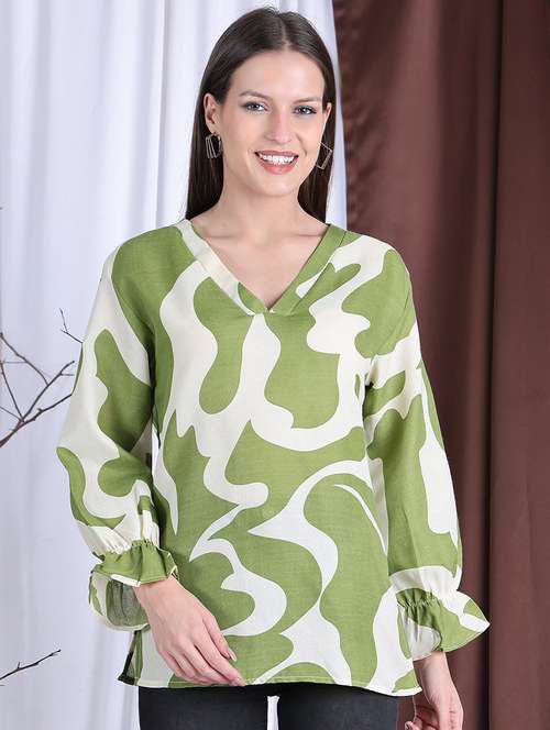 women printed puff sleeve regular top