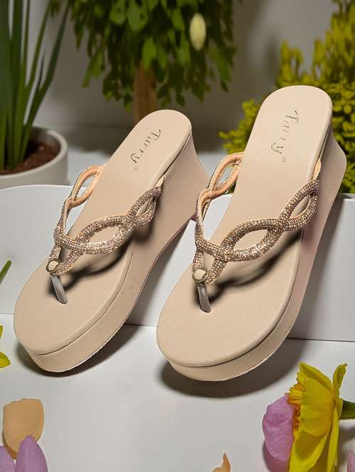 women beige solid slip on sandal