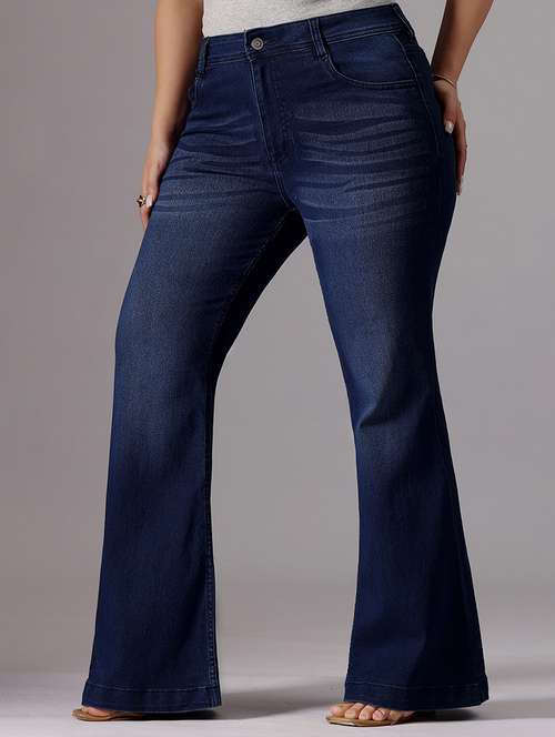 women solid high rise bootcut jeans