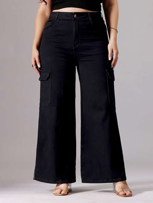 womne plus size solid high rise wide leg jeans