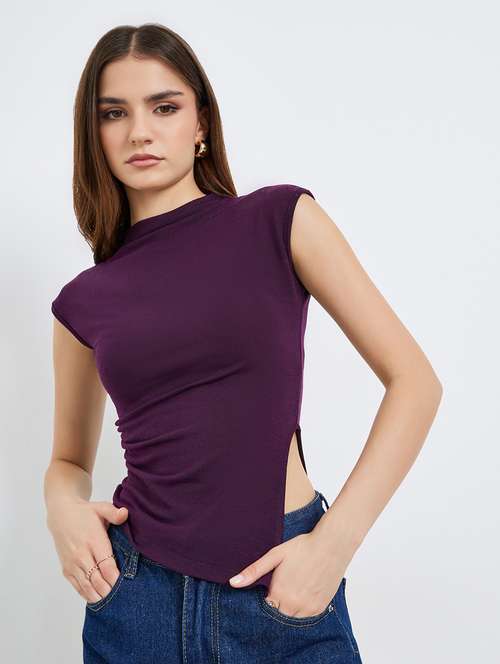 women solid sleevless asymmetric top